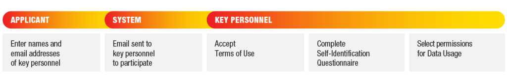 When applying for funding, the project applicant identifies the members of the creative team and provides their contact information. Next, the creative team members automatically receive an invitation from Telefilm to submit their self-identification questionnaire privately and decide what use can be made of it.